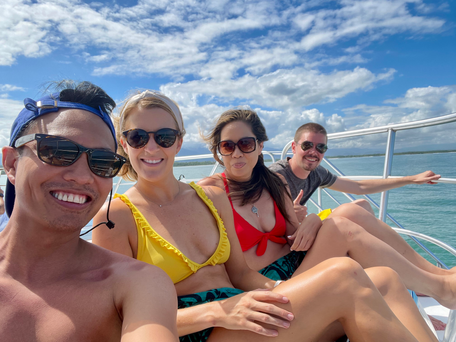 After 6 straight days of being go, go, go, I can’t think of a more perfect last day than how we spent yesterday…on a catamaran. The weather was absolutely stunning and for 4 hours, we did nothing but watched dolphins and sea turtles, snorkeled, took turns jumping off the top deck of the boat and, of course, eating and drinking freshly prepared seafood and cocktails.